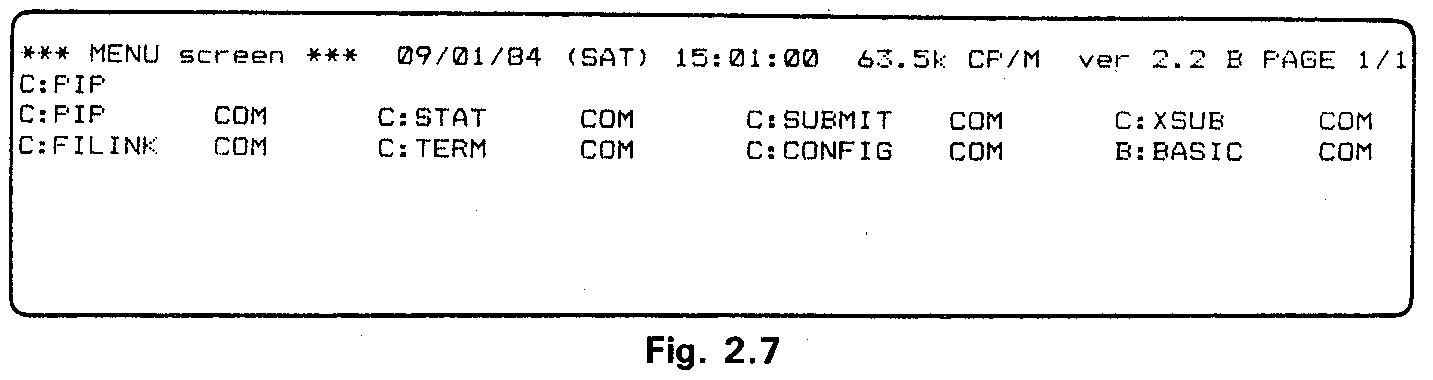 key again and the bottom of the virtual screen, containing the cursor will be shown, with the directory of drive C: and the new CP/M system prompt.