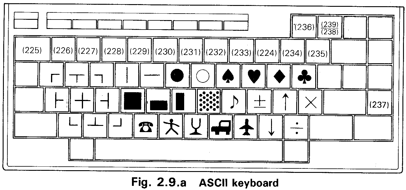 this key enters the graphic character code assigned to the key. Not all keys have graphics characters assigned to them. It is also possible to have user defined characters. Those are defined in the codes indicated in ( ).