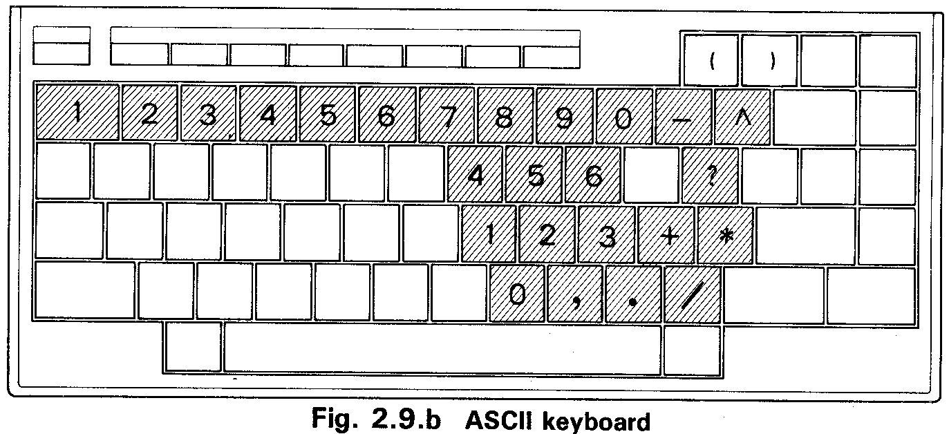 key is held down, a block of keys can be used as a numeric key pad. The key layout is as follows: