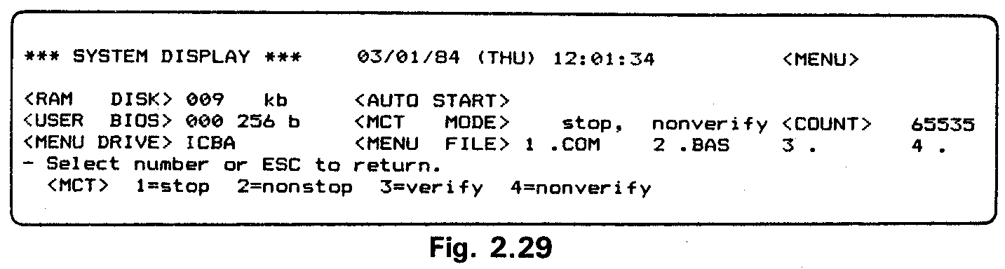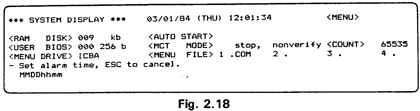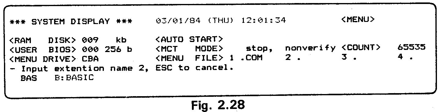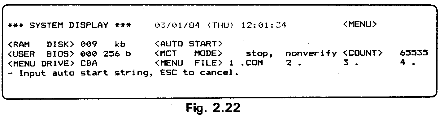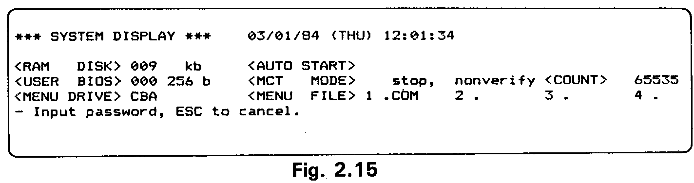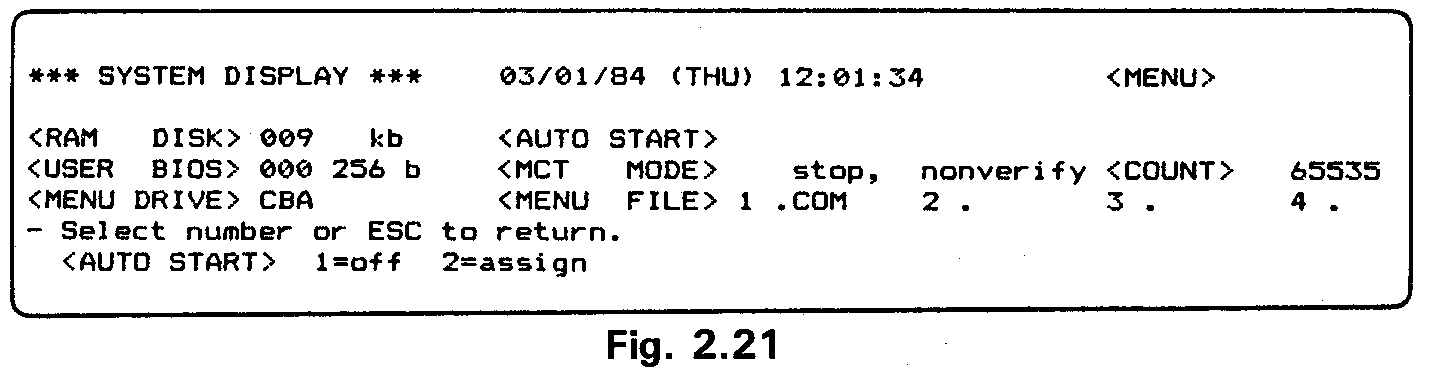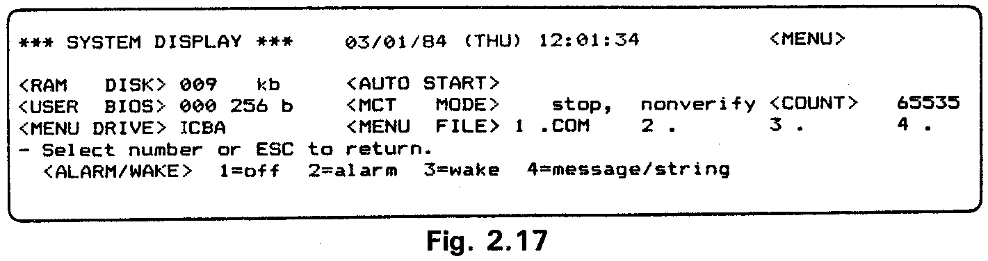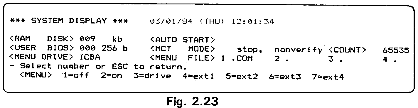 Go to the System Display and switch off the MENU. Exit from the System Dis-play to display the CP/M command line.