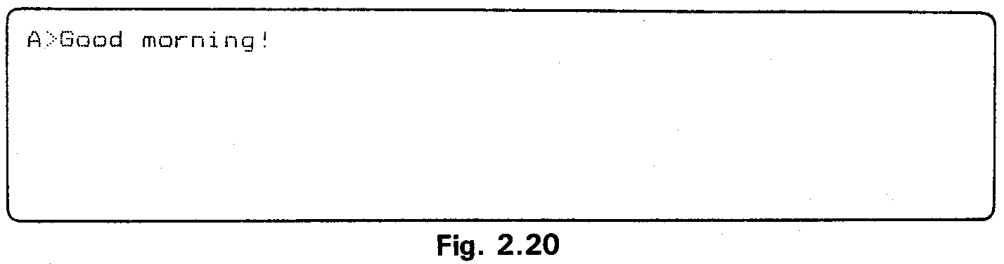 Because only two lines and a new system prompt have been written on the screen, the screen has not needed to scroll. However if the command is typed again, the "?" will scroll off the top of the real screen, and show the following: