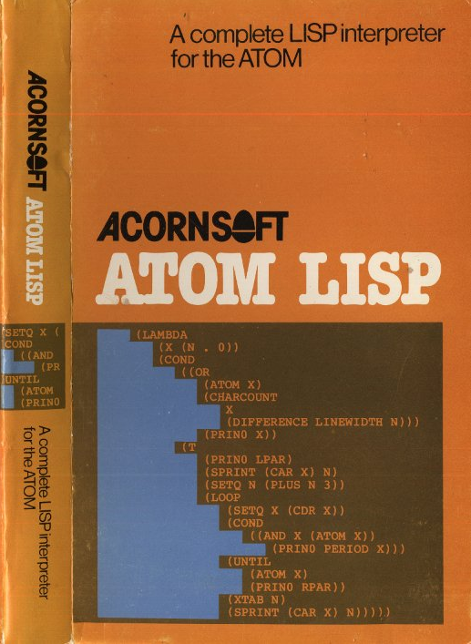 The ATOM LISP interpreter consists of 5½ K of machine-code interpreter plus 3K of initialised LISP workspace containing LISP utilities and constants, which can be deleted to make extra space if not required. It is supplied on cassette and is designed to run on a 8+12K ATOM.